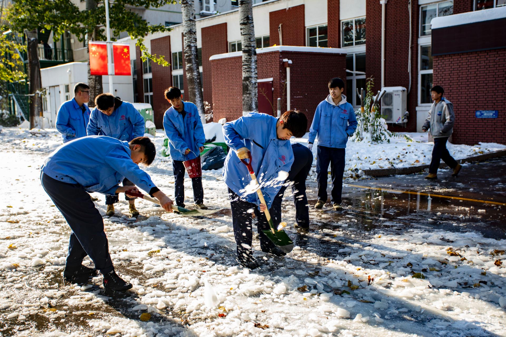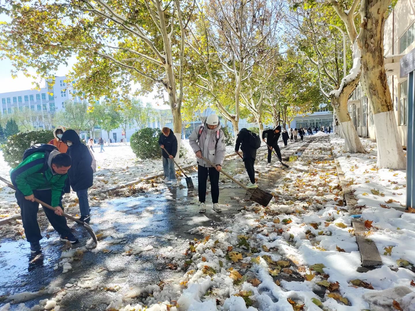 校园除雪进行时 汗水融化暖人心 天职师大师生扫雪除冰保障校园安全