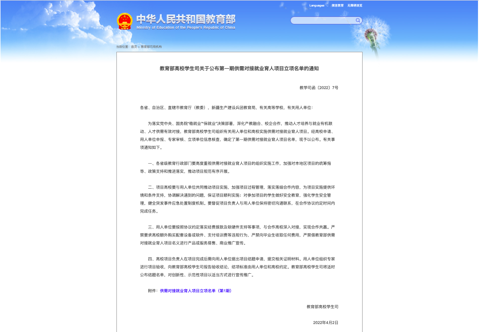 【迎盛会 创标杆】天职师大18个项目获批教育部第一期供需对接就业育人项目立项
