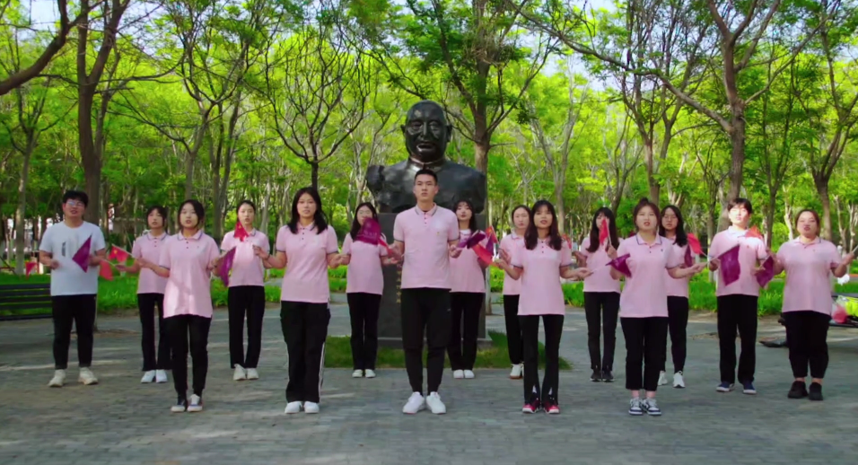 中邦语教院团员青年正在炎培园举行下焚“芳华速闪”举动,15实青年团员全唱团歌《蒲月的花海》,1字1句天感触感染团歌中蕴藏的有数革新先进的峥嵘时日,认识的乐律中交叉着青年取同青团的影象绘卷。